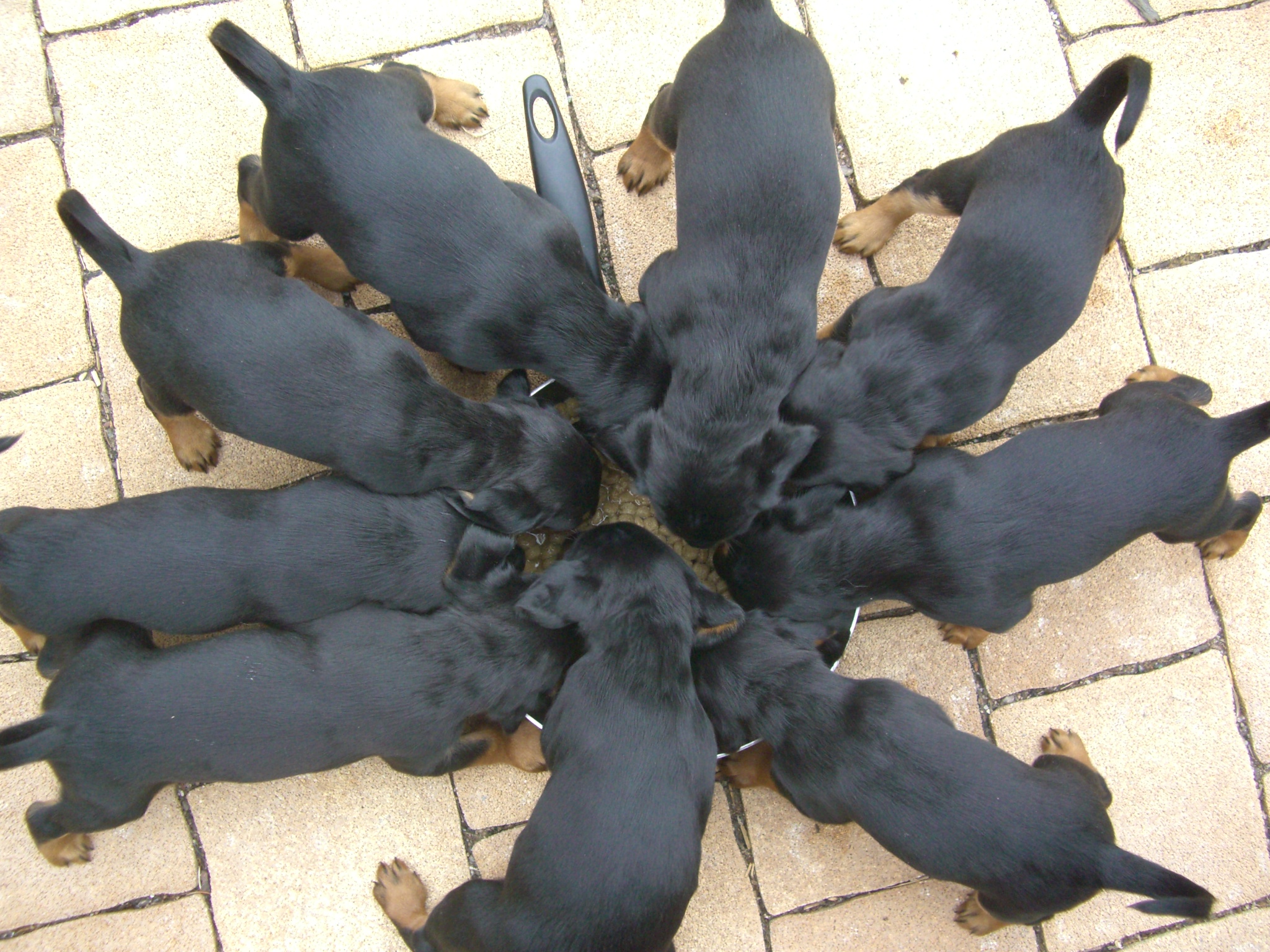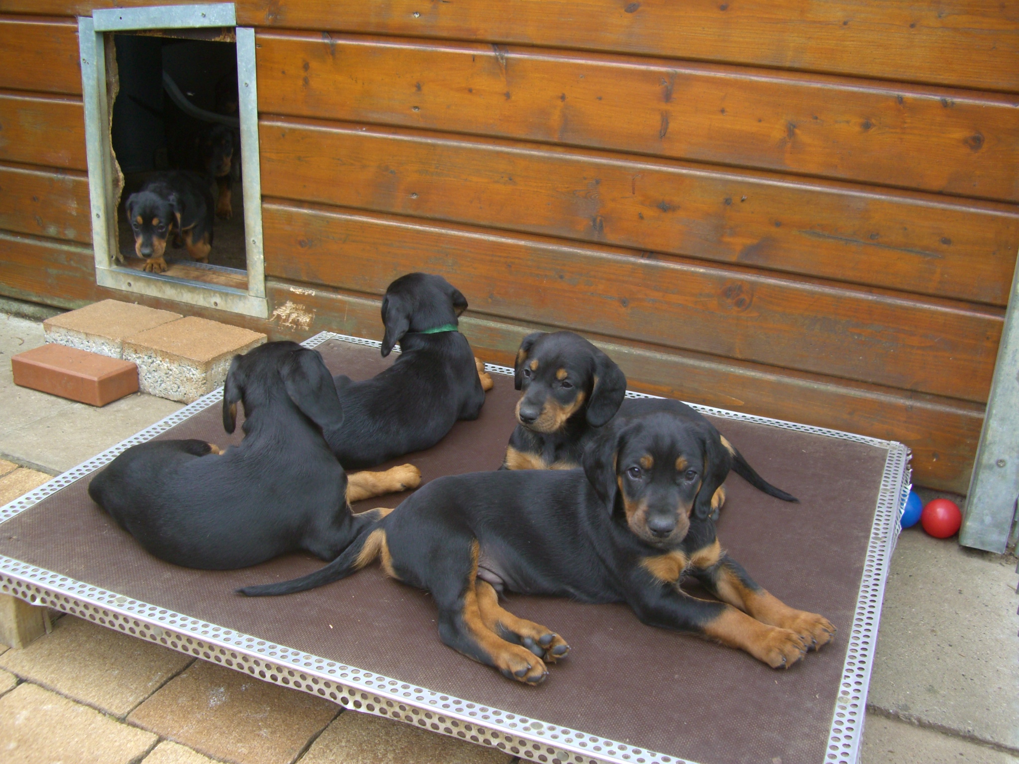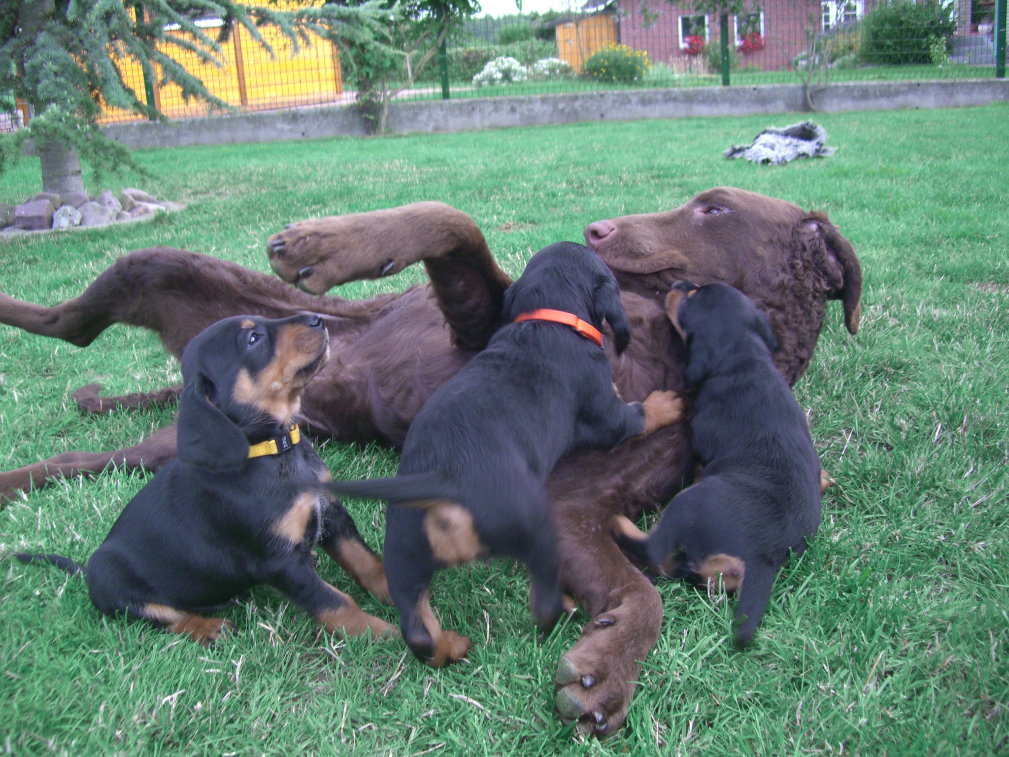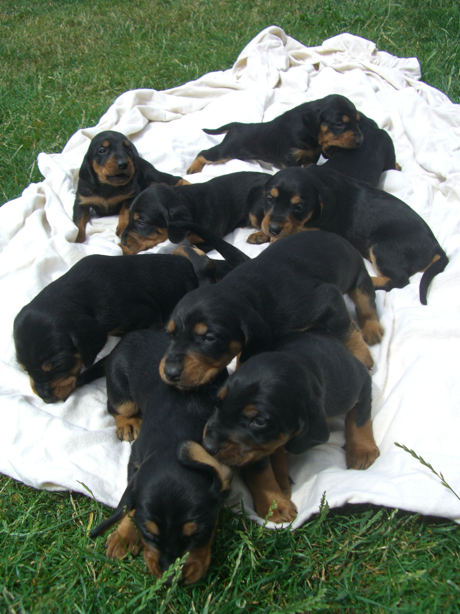 Am 8.7.2010 erblickten neun gesunde Slovensky Kopovwelpen (4,5) das Licht der Welt. Unsere Cora meistert ihre Aufgabe zum ersten Mal Mutter zu sein hervorragend - eine Mischung aus liebevoll und wachsam.